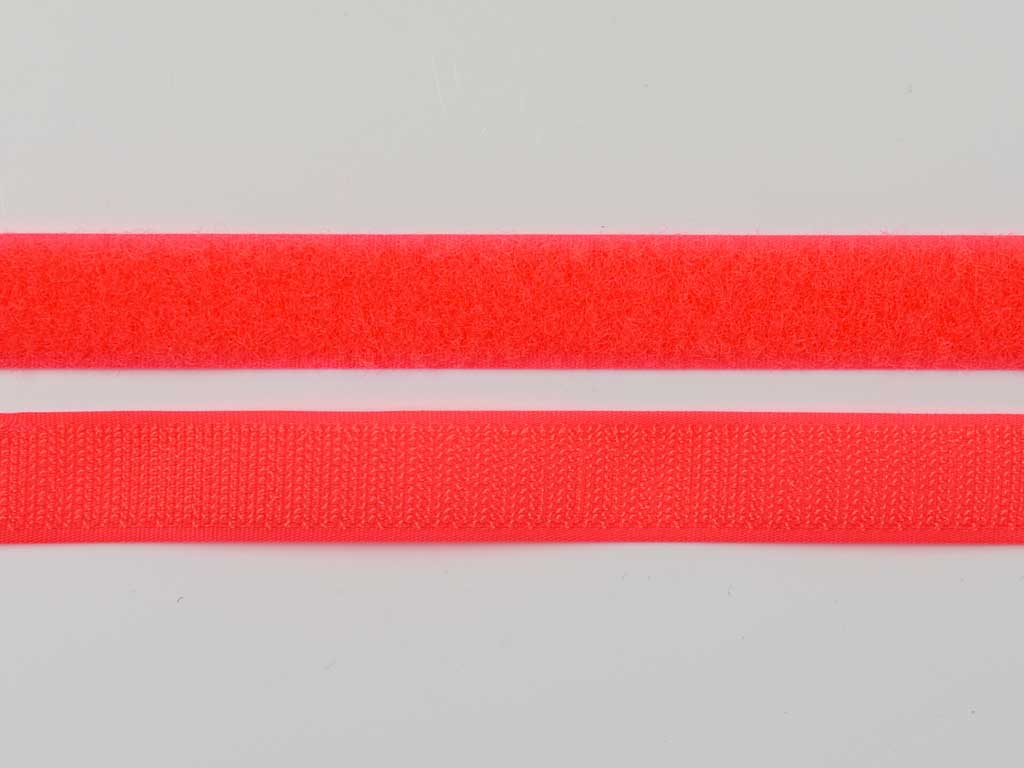 Klettband bestehend aus Flausch- und Hakenband in der Breite 2 cm in der Farbe Neonorange.