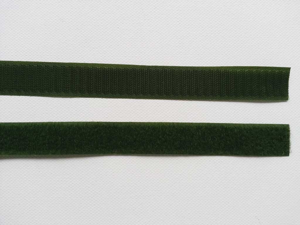 Olivgrünes Klettband bestehend aus Flausch- und Hakenband in der Breite 2 cm zum Aufnähen.