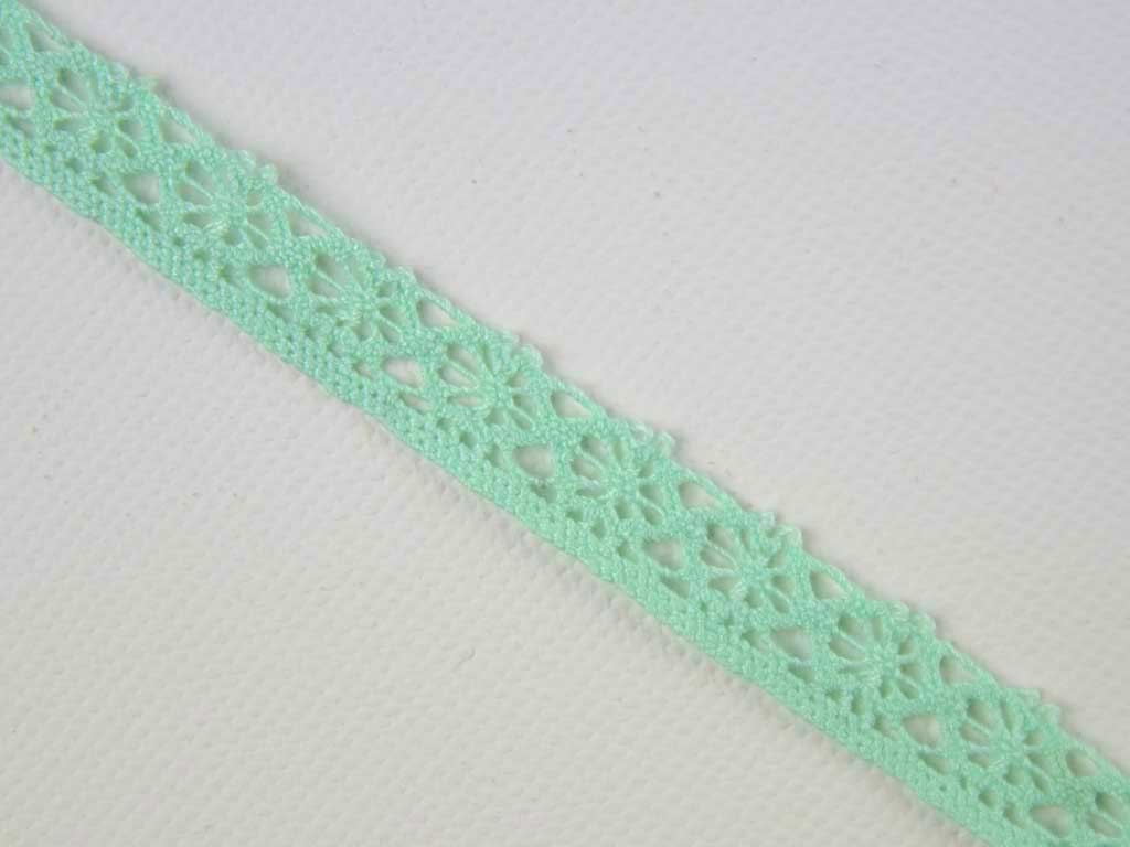 Eine wunderschöne Klöppelspitze in weicher Qualität in der Farbe Mint.