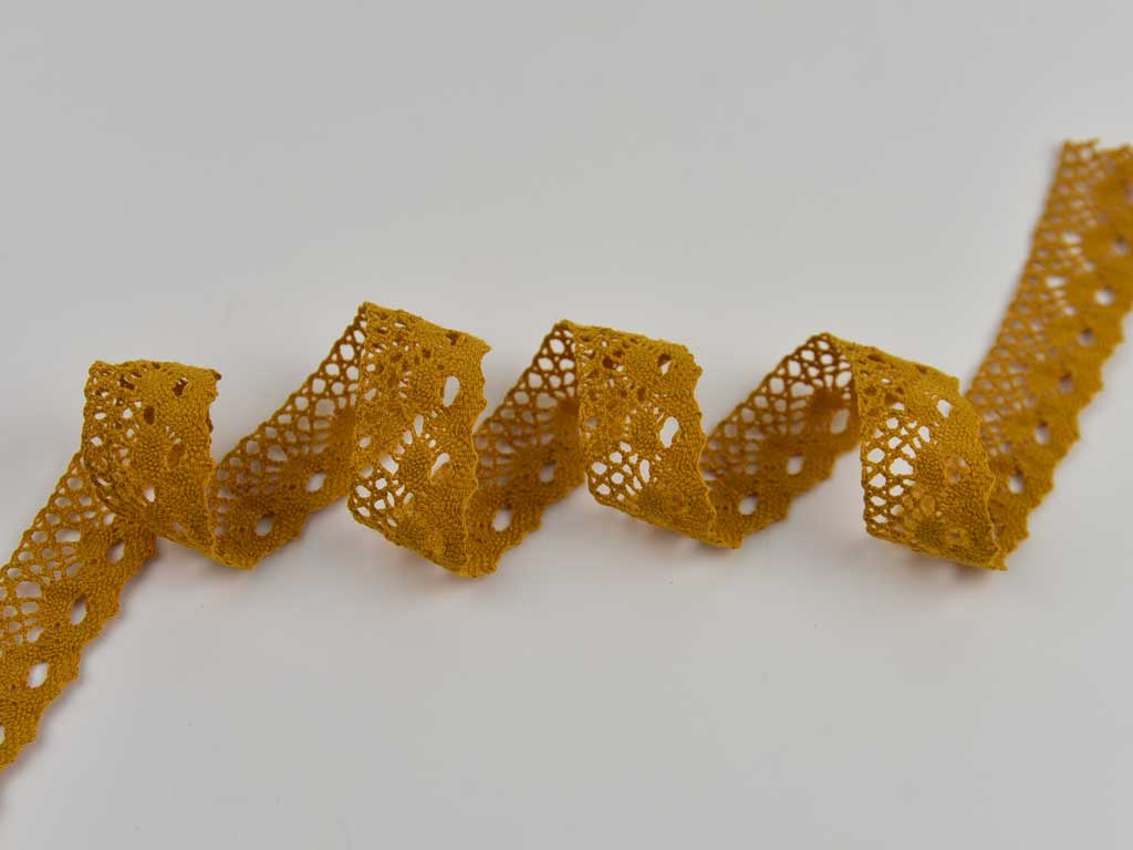 Eine wunderschöne, weiche Klöppelspitze in Ockergelb.