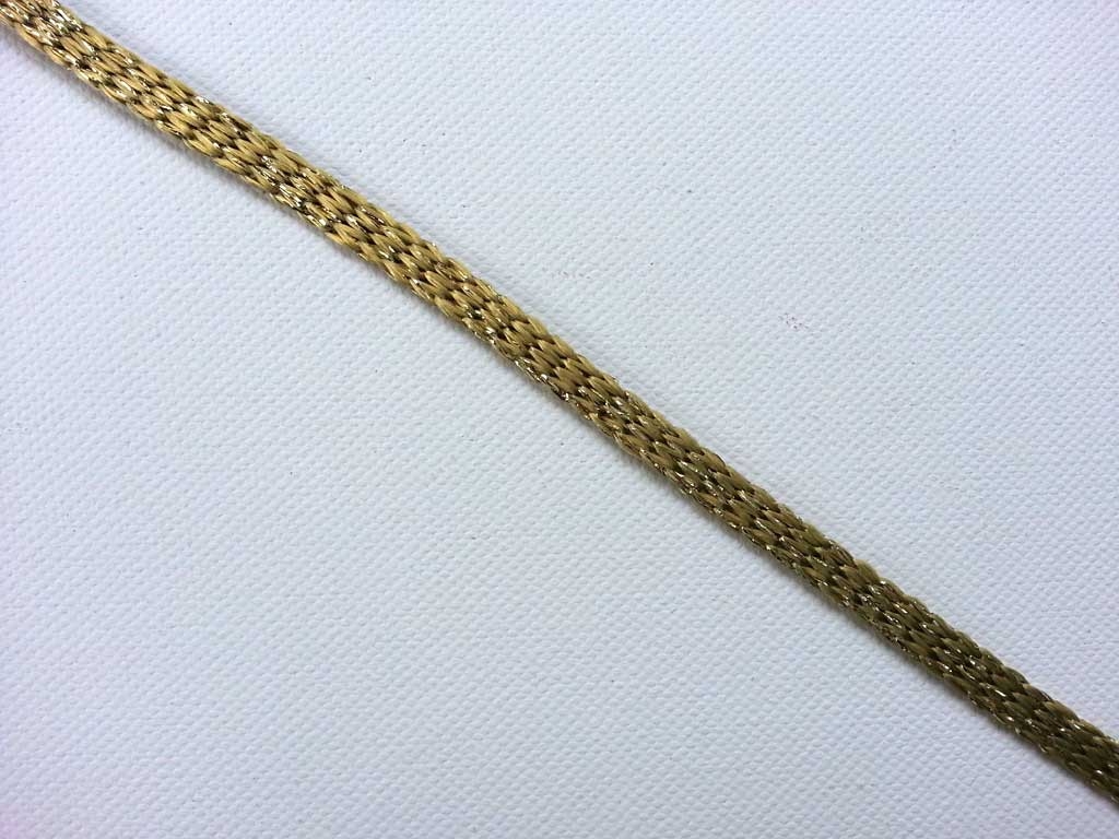 Eine weiche flache Glitzerkordel in goldfarben. Die Kordel ist 7 mm breit.Bestens geeignet zum Einziehen in Kapuzenpullis, Jogginghosen, Röcke, Shorts, Turnbeutel etc.