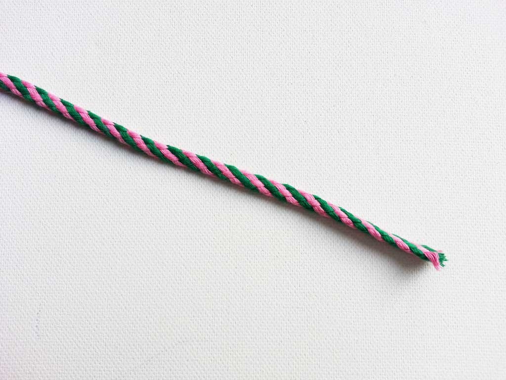 Super schöne Baumwollkordel in leuchtend grün und rosa.