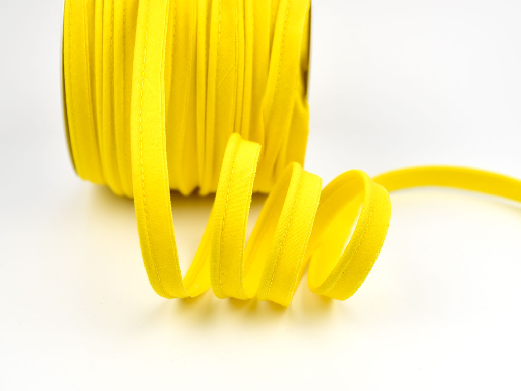 Ein hochwertiges Paspelband aus 100% Baumwolle in gelb. Die Paspel ist rund und 2,5 mm breit, das komplette Paspelband ist 15 mm breit.