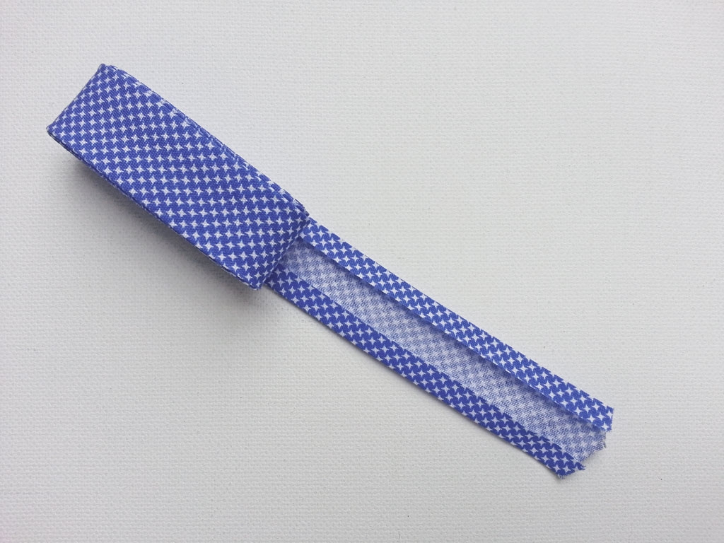 Vorgefalzt auf 20mm Breite. Zusammengeklappt und angenäht ist es dann nur noch 1 cm breit.