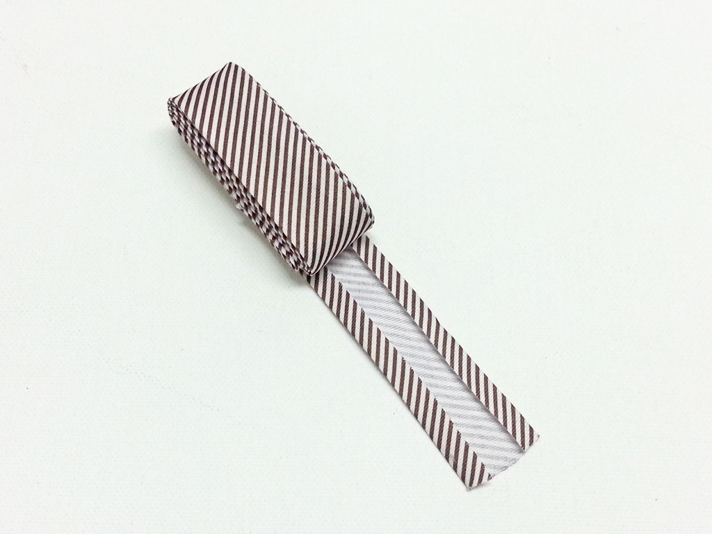 Vorgefalzt auf 20mm Breite. Zusammengeklappt und angenäht ist es dann nur noch 1 cm breit.
