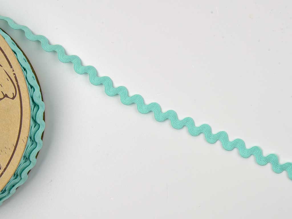 Eine Baumwoll-Zackenlitze in der Trendfarbe Mint in der Breite 10 mm.
