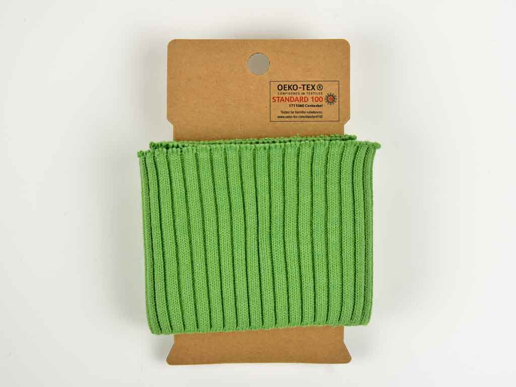 Ein mittelschweres, dickeres und stabiles Strickbündchen in grün. Das Bündchen hat eine fertige Kante und muss nur noch angenäht werden.