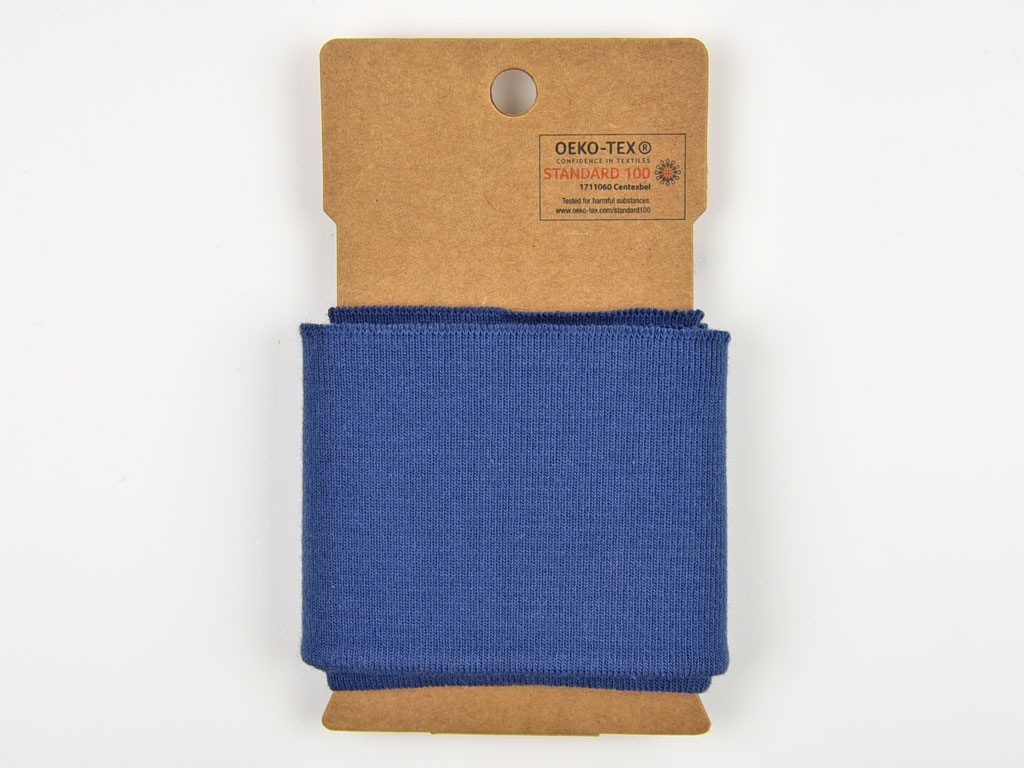 Ein schönes, jeansblaues Fertigbündchen. Das Bündchen hat eine fertige Kante und muss nur noch angenäht werden.