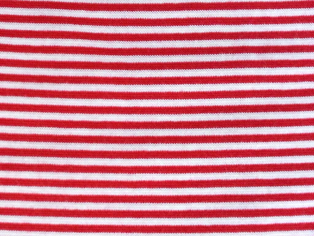 Ein weiches elastisches Bündchen als Glattstrick mit Streifen in rot und weiss. Die Streifen sind 3 mm breit.
