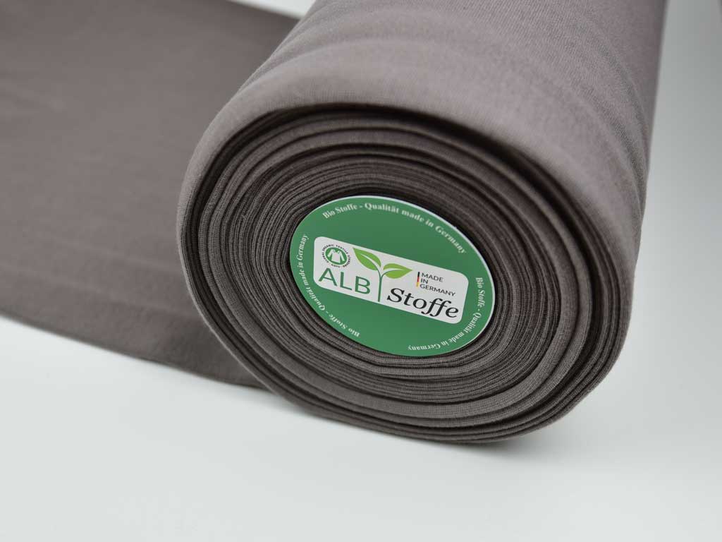 Hochwertiges Bio-Bündchen in taupe (griglio londra). Durch die Verwendung von hochwertigem Dtex 44 Lycra® Elasthan und einer hochtechnischen Ausrüstung wird ein Ausleiern des Bündchen vermieden.
