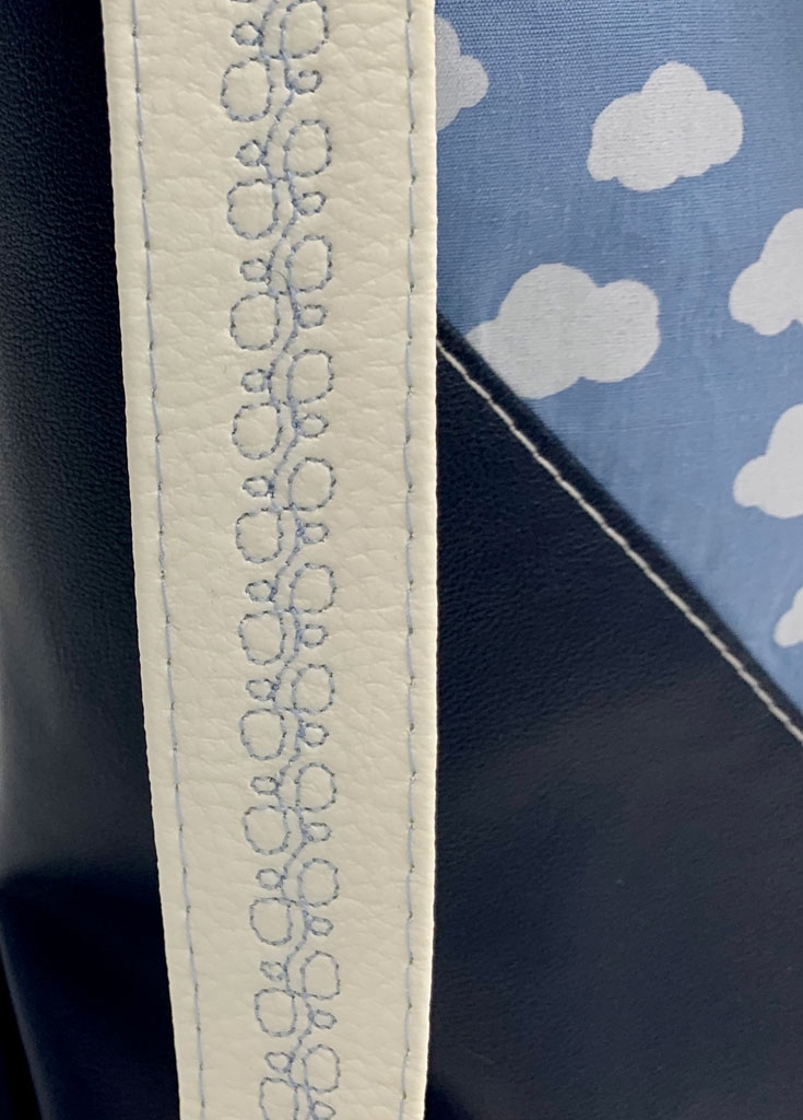 Ein kräftiges, dennoch leicht elastisches, Lederimitat in dunkelblau. Es hat eine leichte Narbung und sieht edel aus. Auf der Rückseite hat es einen weißen Geweberücken.