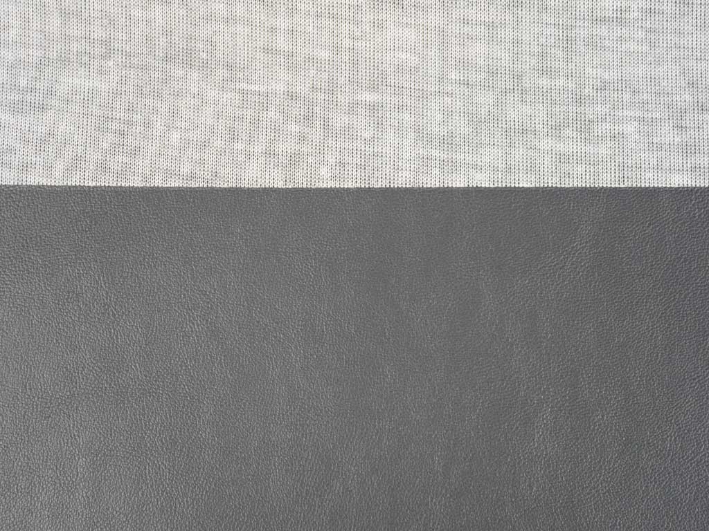 Ein kräftiges, dennoch leicht elastisches, Lederimitat in dunkelgrau. Es hat eine leichte Narbung und sieht edel aus. Auf der Rückseite hat es einen weißen Geweberücken.