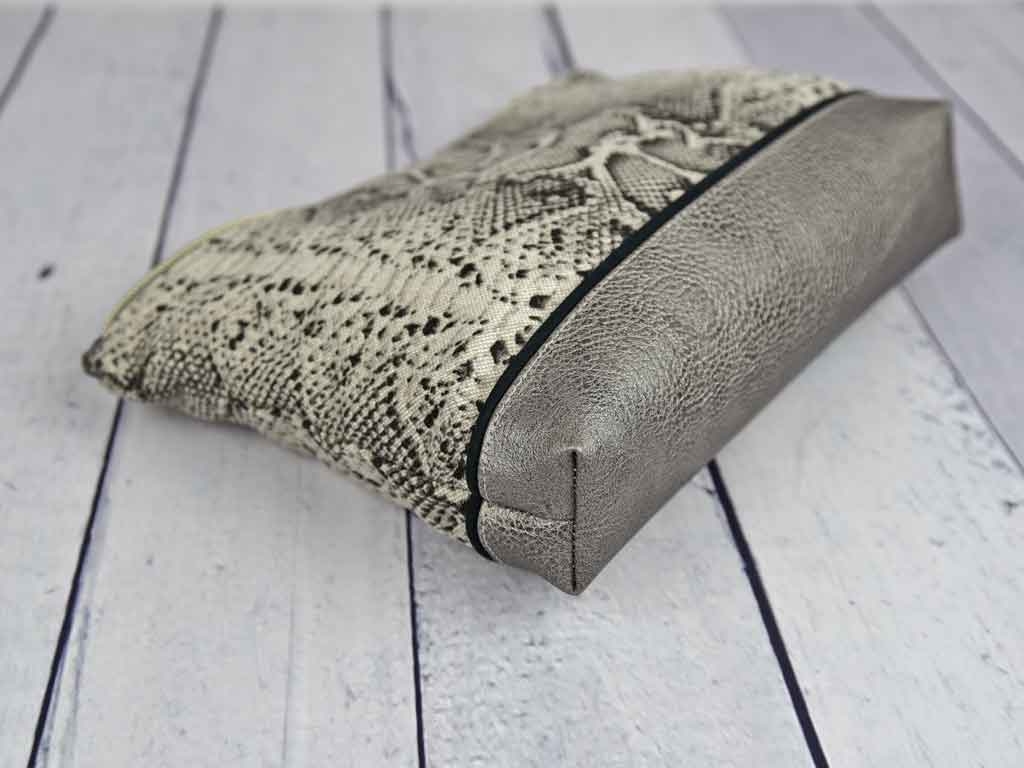 Leinenlook Dekostoff Schlangenmuster, grau schwarz natur