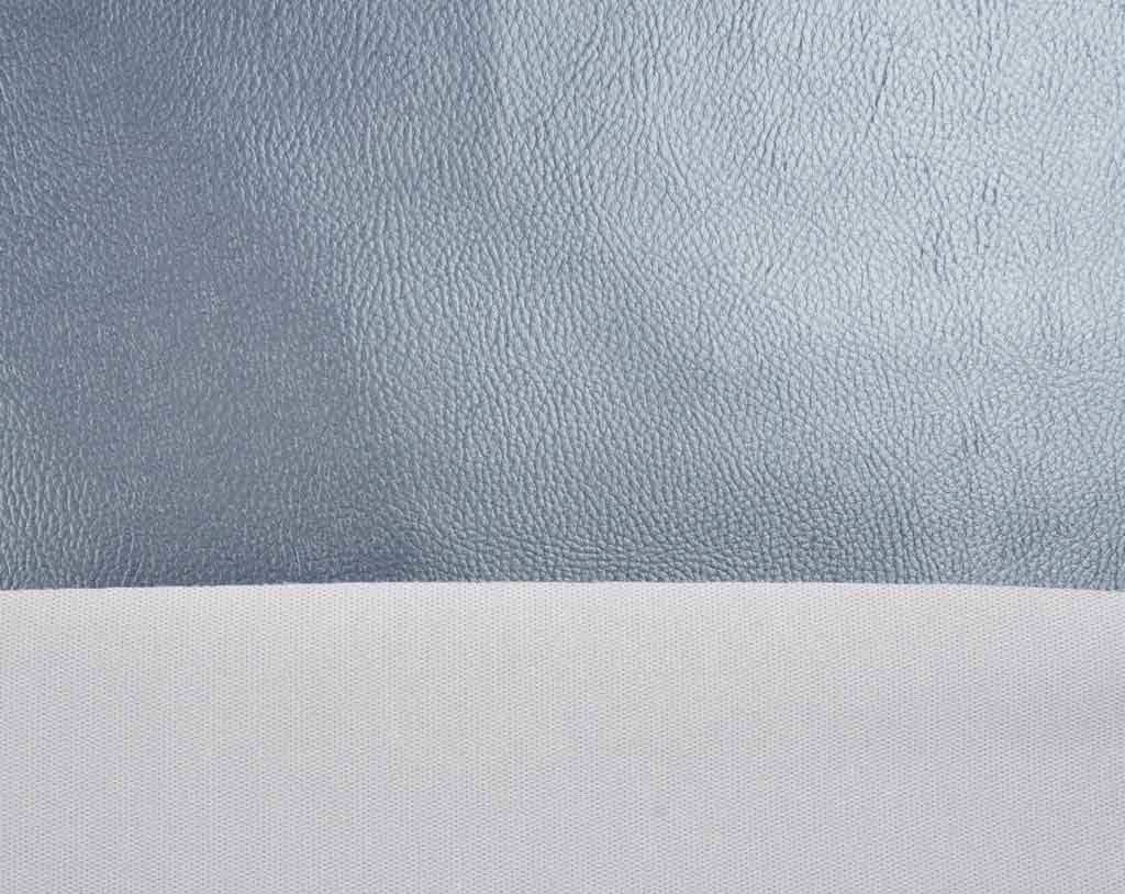 Ein tolles Kunstleder in dunkelgrau metallic (mit leicht bläulichem Stich) mit geprägter Optik. Die Rückseite hat einen Geweberücken. Das Kunstleder ist stabil und trotzdem flexibel und sieht sehr edel aus.