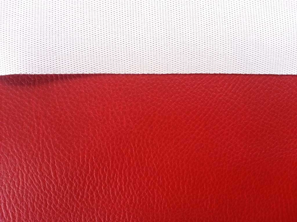 Ein tolles Kunstleder in Rot mit geprägter Optik. Die Rückseite hat einenweißen Geweberücken. Das Kunstleder ist stabil und trotzdem flexibel und sieht sehr edel aus.