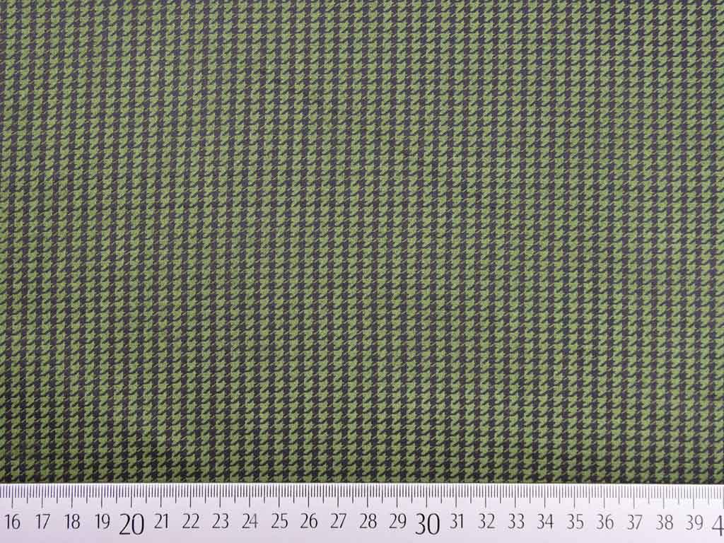 Ein dünner Scuba Sweatshirtstoff in khaki mit Wildleder Haptik und kleinem dunkelgrauen Hahnentrittmuster. Der Stoff erinnert vom Griff an Surfanzügen (daher der Name "Scuba"), denn er ist kompakt, hat einen gewissen Stand und ist aber trotzdem weich im Griff.