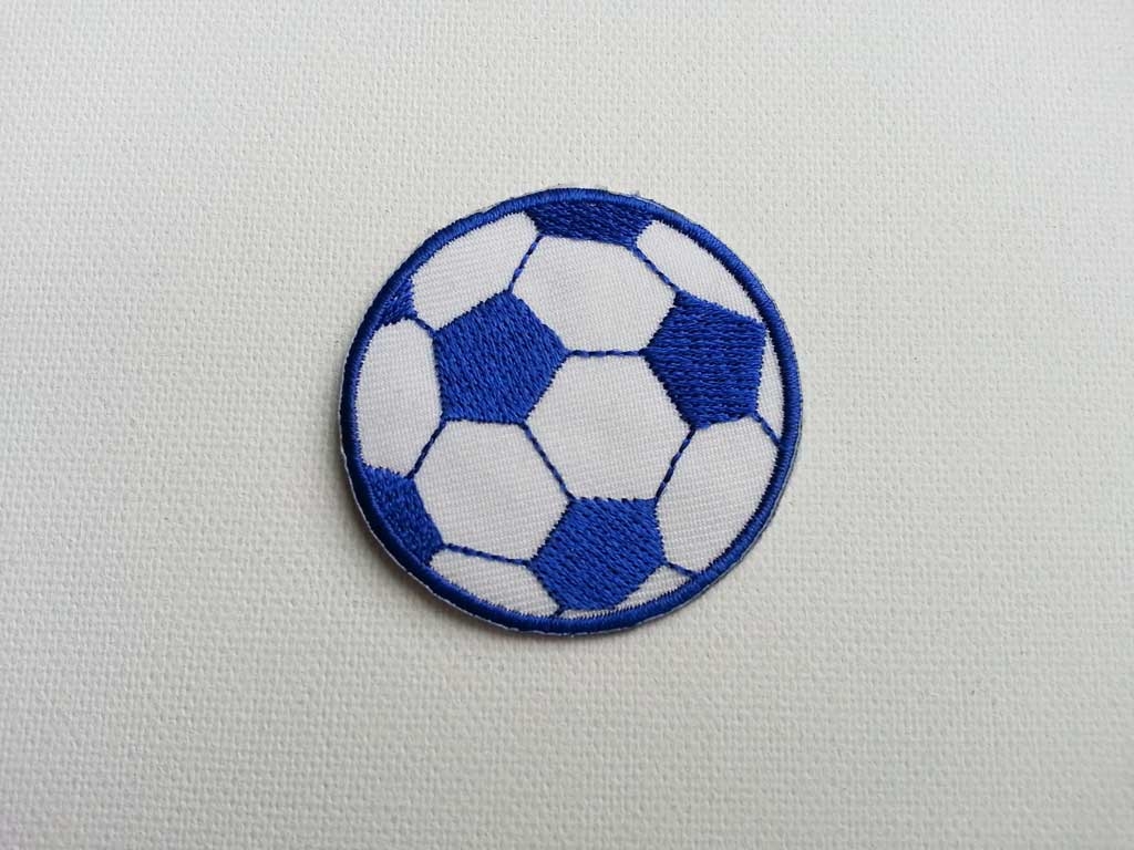 Fussball Bügelmotiv in blau-weiss zum Aufbügeln auf Bekleidung, Taschen, etc. Die Bügelanleitung liegt dem Motiv bei. Für verbesserte Haltbarkeit, nach dem Aufbügeln rundherum festnähen.