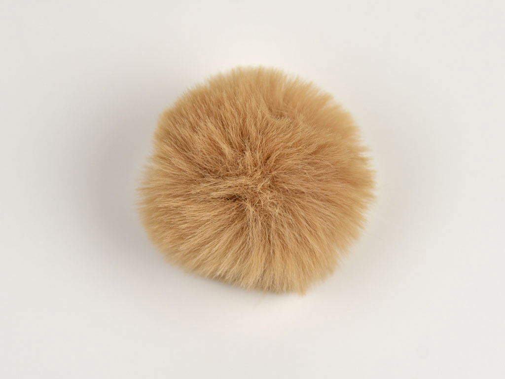 Kuschelig weiche Kunstfellbommel in beige mit kleiner Gummischlaufe z.B. zum Anbringen an Mützen.