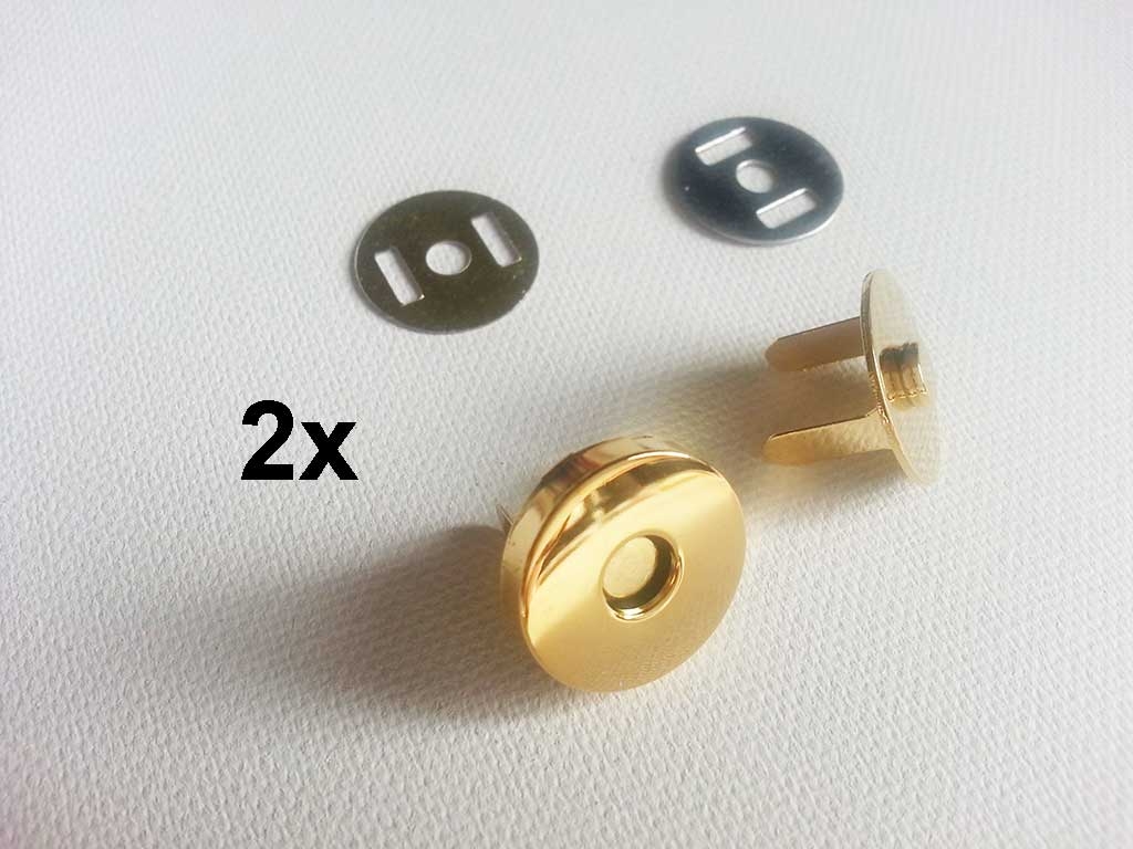 2 Magnetverschlüße in goldfarben/glänzend für Taschen, Organiser, Rucksäcke, Täschchen, etc. Jeder Magnetknopf besteht aus 4 Teilen: 2 Magnete und 2 Gegenstücke