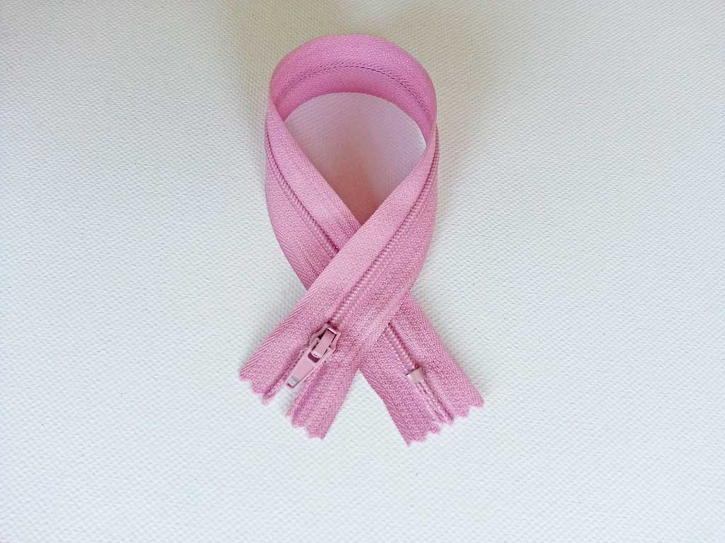 Ein nicht teilbarer Spiralreißverschluss in altrosa in 25 cm Länge.