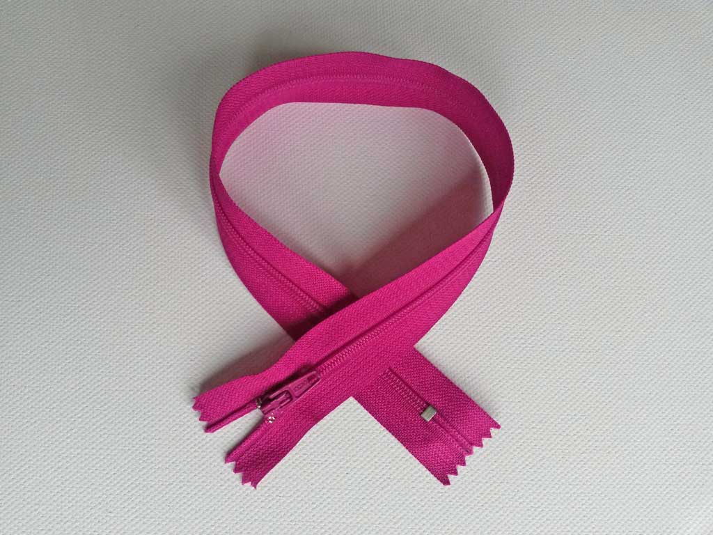 Ein nicht teilbarer Spiralreißverschluss in fuchsia in der Länge 35 cm.