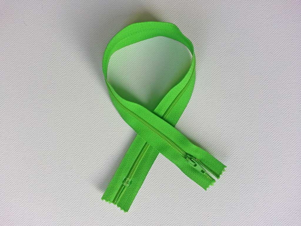 Ein nicht teilbarer Spiralreißverschluss in leuchtend grün in der Länge 35 cm.