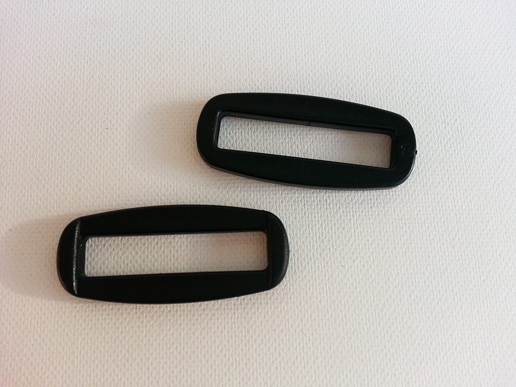 Zwei abgerundete eckige Ringe/Halter in 4 cm (40 mm) Breite aus hochwertigem Kunststoff in schwarz.