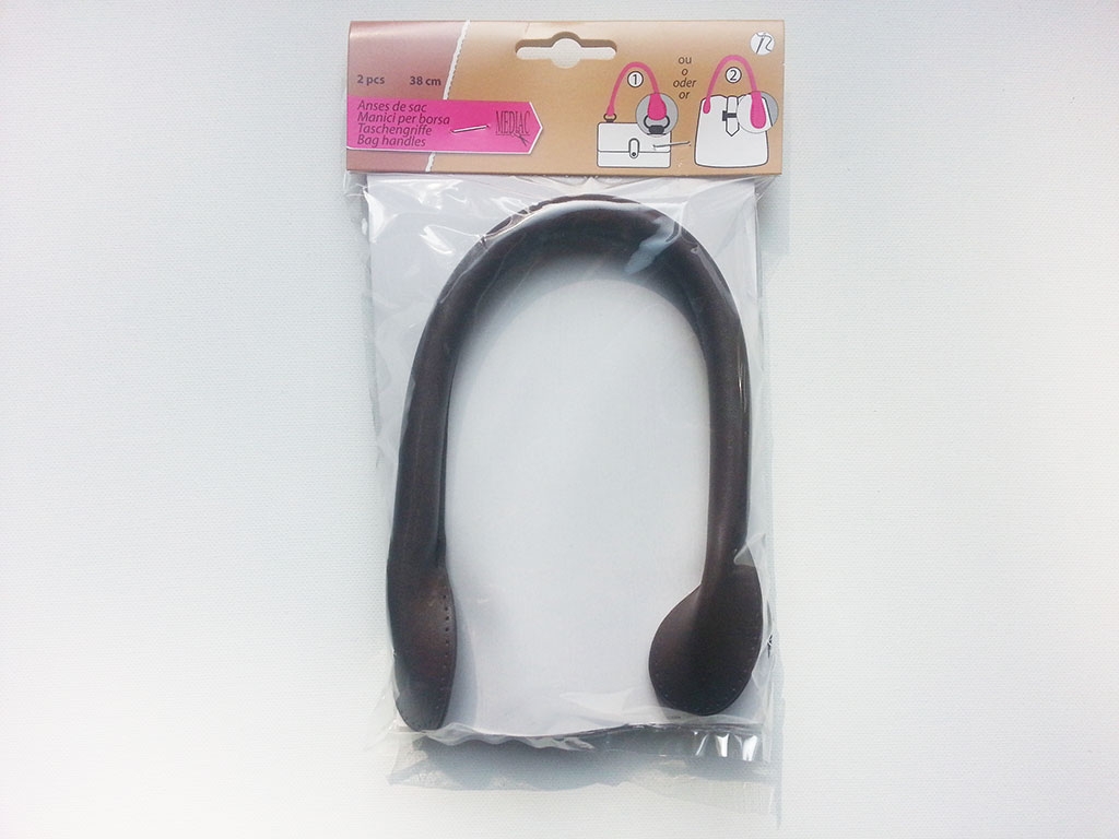 Praktische und stabile Taschengriffe aus Kunstleder in dunkelbraun. Einfach annähen und Ihre Tasche sieht professionell aus. Die Griffe sind 38 cm lang.