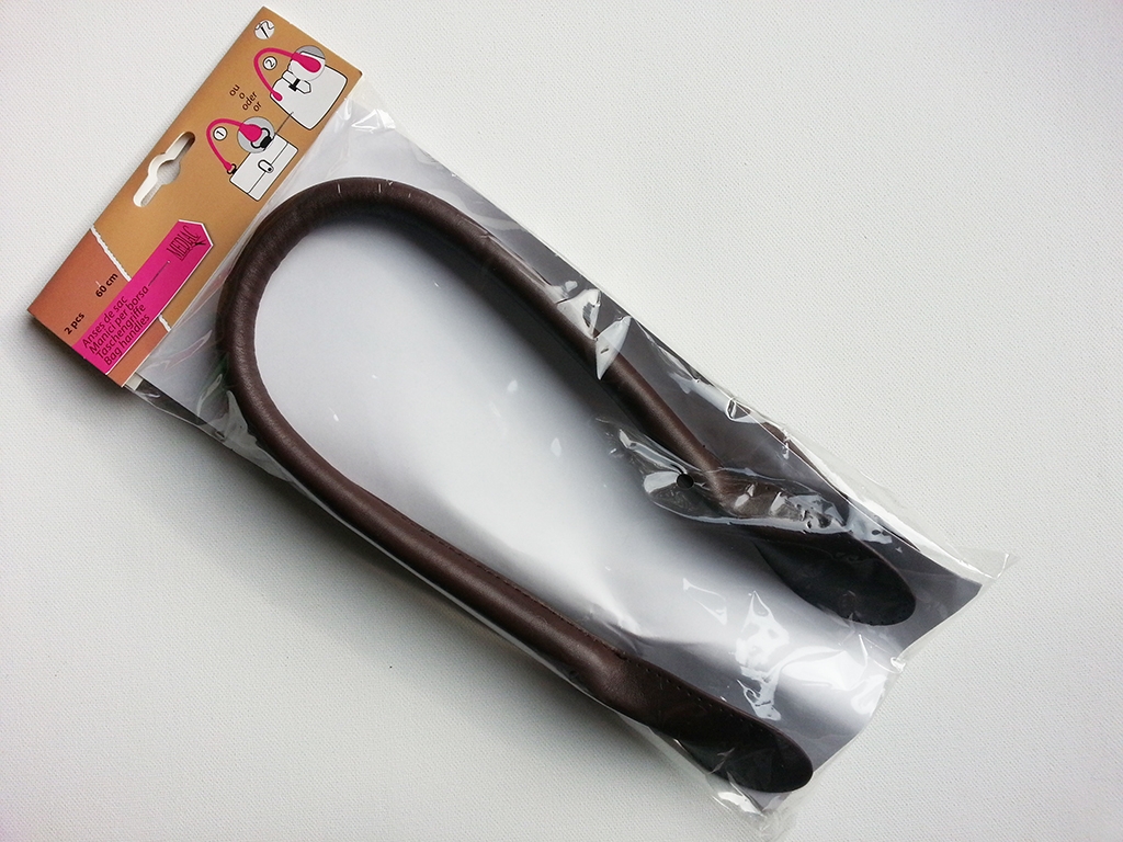 Praktische und stabile Taschengriffe aus Kunstleder in dunkelbraun. Einfach annähen und Ihre Tasche sieht professionell aus. Die Griffe sind 60 cm lang.
