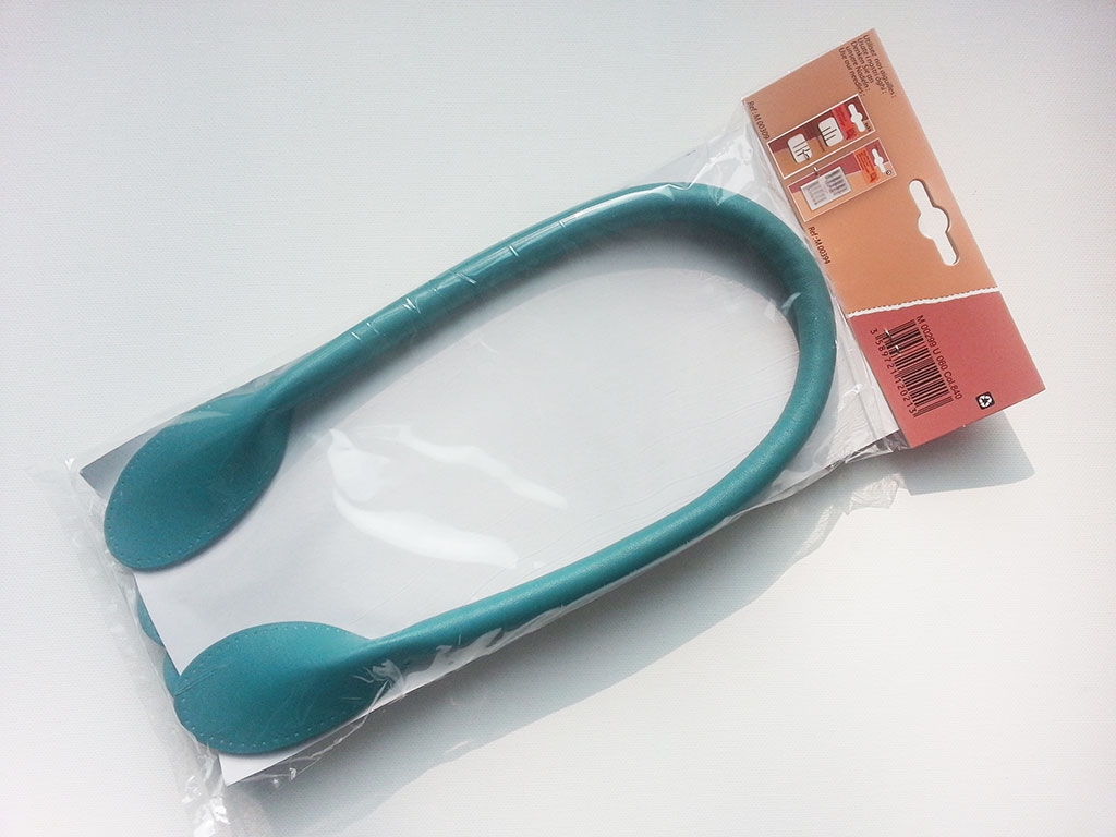 Praktische und stabile Taschengriffe aus Kunstleder in türkis. Einfach annähen und Ihre Tasche sieht professionell aus. Die Griffe sind 60 cm lang.