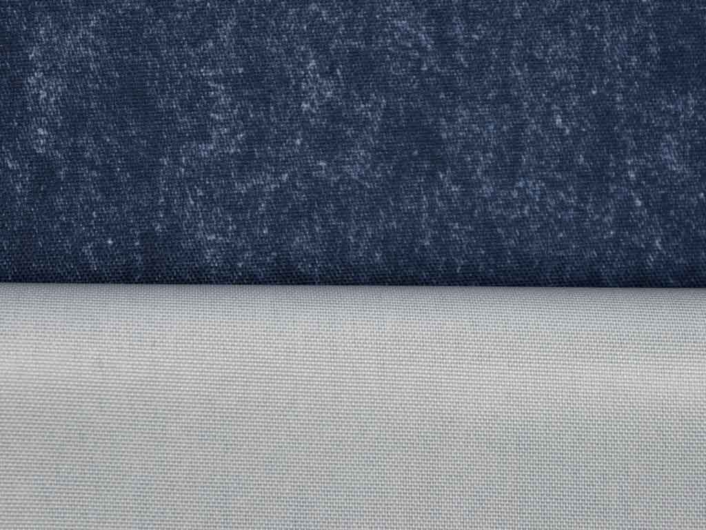 Ein etwas dickerer, wasser- und schmutzabweisender Stoff in washed Jeanslook Optik in dunkelblau. Die weiße Rückseite des Stoffes ist beschichtet.