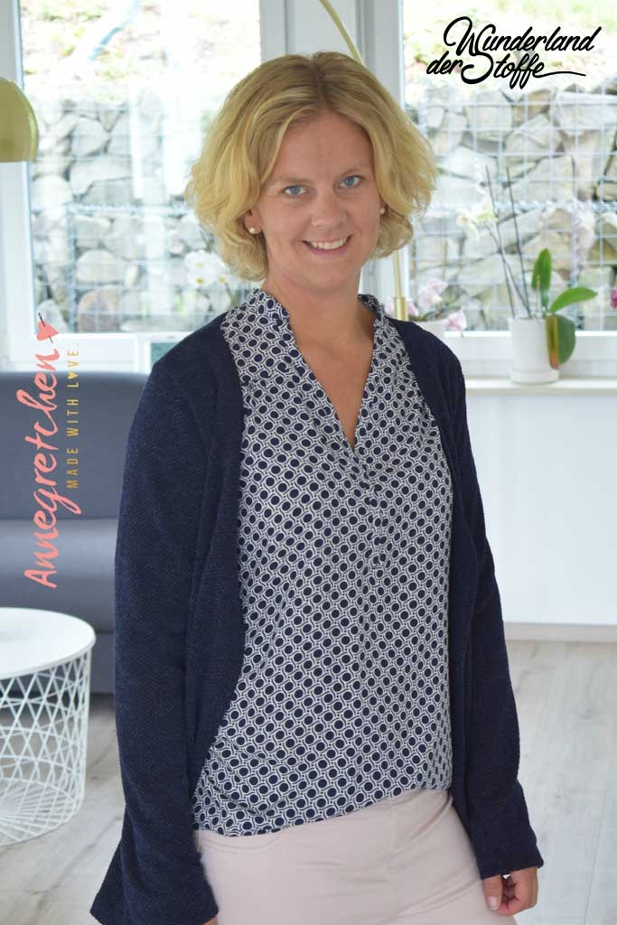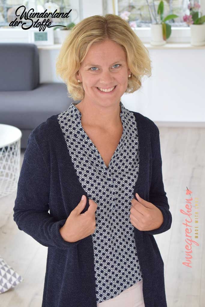 Der lillesol women No.11 Cardigan kann neben Jersey auch besonders schön aus leichter Strickware oder etwas robuster aus dicker Maschenware genäht werden.