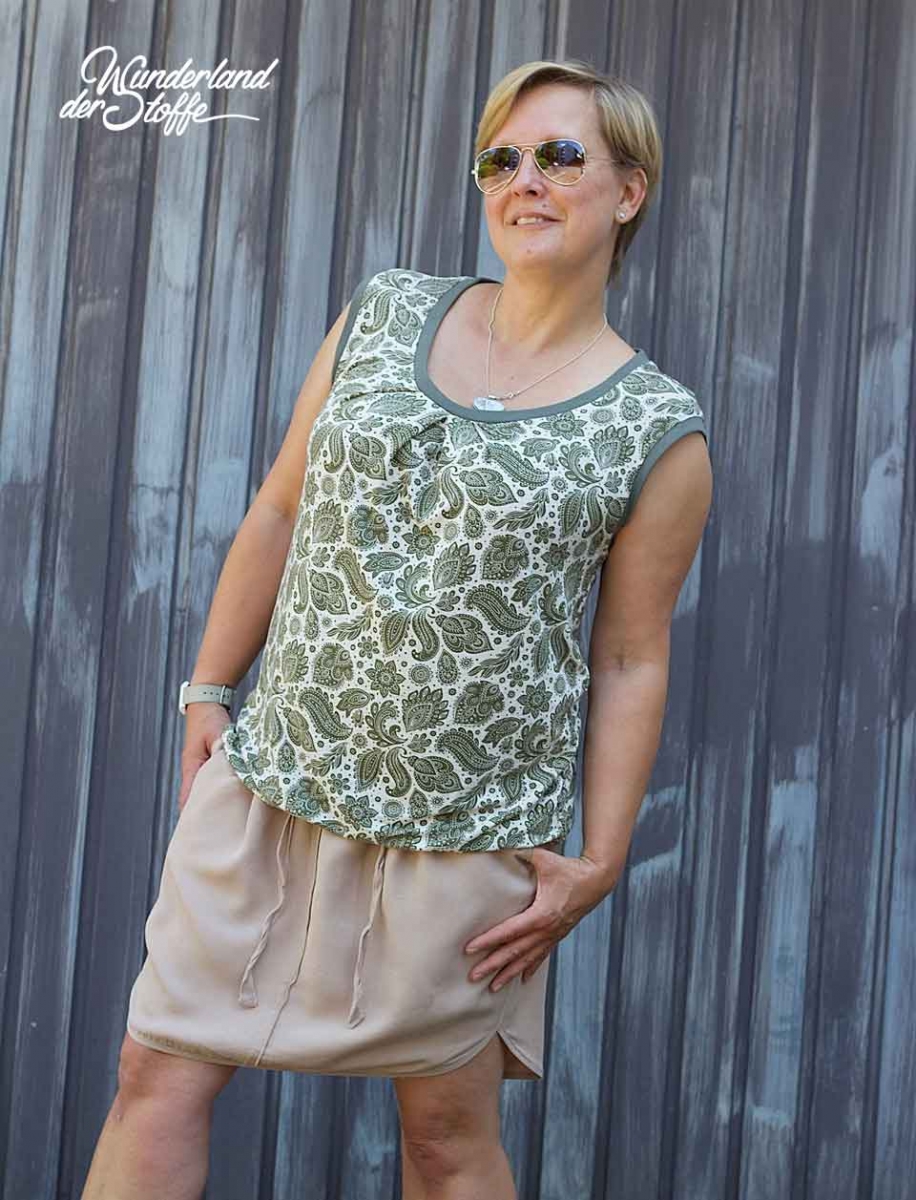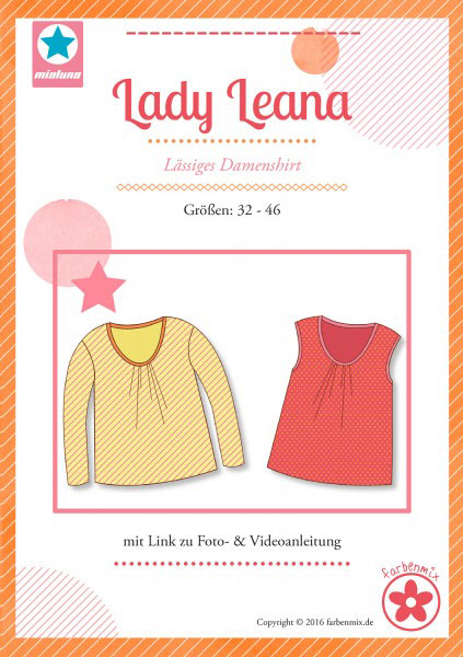Lady Leana von miaLuna ist ein Shirt-Schnitt fürs ganze Jahr. Es kann mit langen oder kurzen Ärmeln, mit schmalen oder überschnittenen Schultern genäht werden. Auch ist es in der Weite variierbar. Durch ein angesetztes Saumbündchen oder einer Kräuselung statt der Falten auf der Vorderseite, nähst Du das Shirt immer wieder in einem anderem Look. Stoffempfehlung Besonders schön fällt das Shirt, wenn es aus leichten Jerseystoffen wie Modal- oder Viskose genäht wird. Möchtest Du diese Jerseys verarbeiten, kann eventuell eine Kleidergröße kleiner genäht werden.