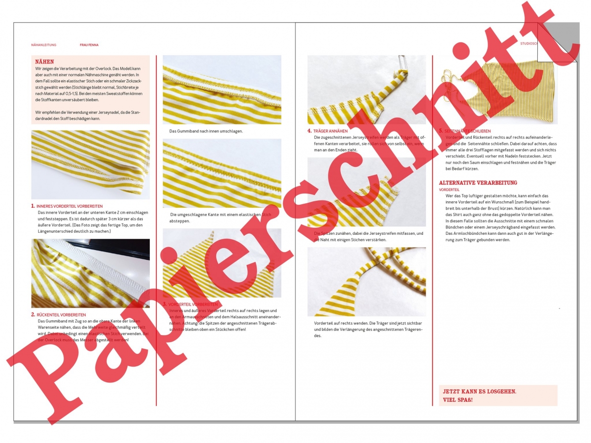 © Alle Rechte an diesem Schnitt liegen bei STUDIO SCHNITTREIF (Anja Müssig und Brid Fichtner). Das Schnittmuster darf nur für den privaten gebrauch verwendet werden. Es ist nicht erlaubt, das Schnittmuster für die Produktion von Verkaufsartikeln zu verwenden. Kopieren und Weitergabe der Anleitung sind nicht gestattet. Für Fehler in der Anleitung wird keine Haftung übernommen.