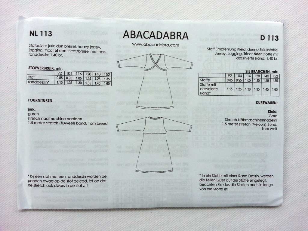 Ein tolles Schnittmuster von Abacadabra für ein Mädchen Jerseykleid in Wickeloptik mit langen Ärmeln.