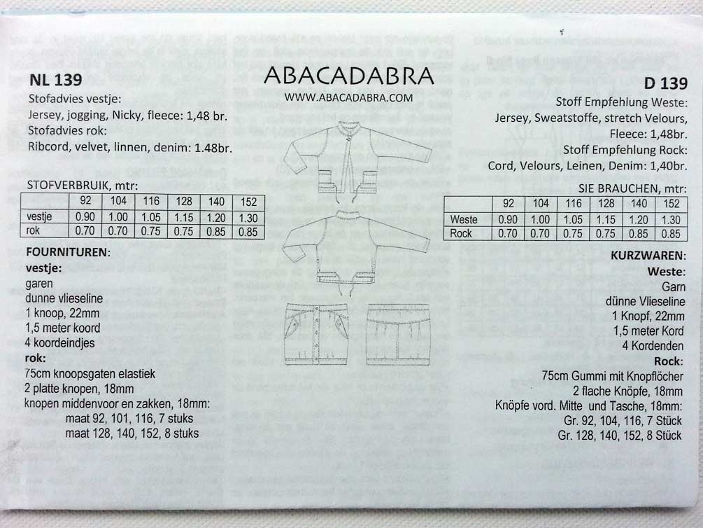 Ein tolles Schnittmuster von Abacadabra für einen geknöpften Mädchenrock und eine Kurzjacke.