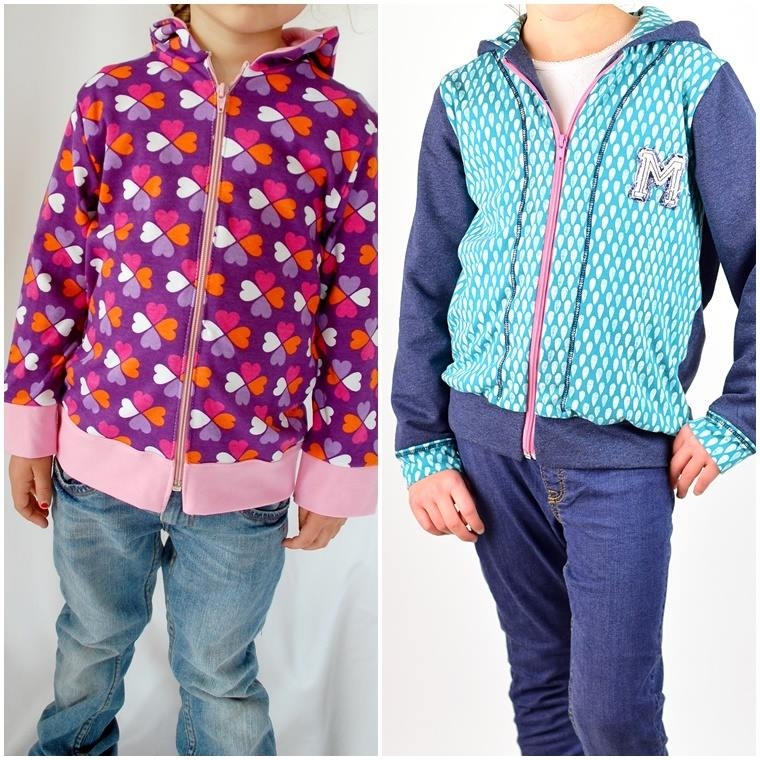 Für eine leicht zu nähende anfängertaugliche Kapuzenjacke wird die Kapuzenjacke ohne Belege genäht, für Fortgeschrittene ist auch eine Version mit Belegen enthalten.
