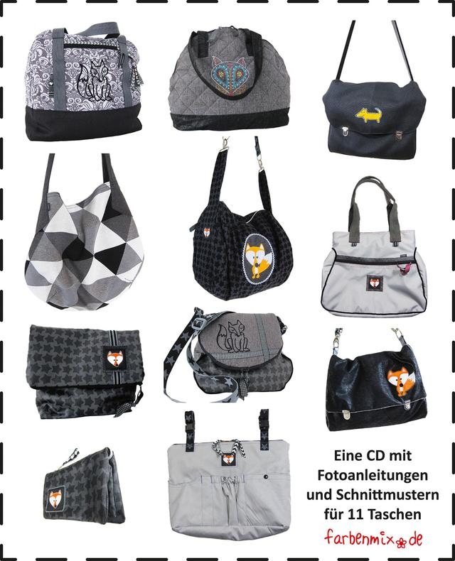 Es lassen sich herrlich einzigartige Taschenkombinationen nähen.Die Taschenspieler CD 3 enthält die Schnittmuster und Anleitungen für diese Taschen: