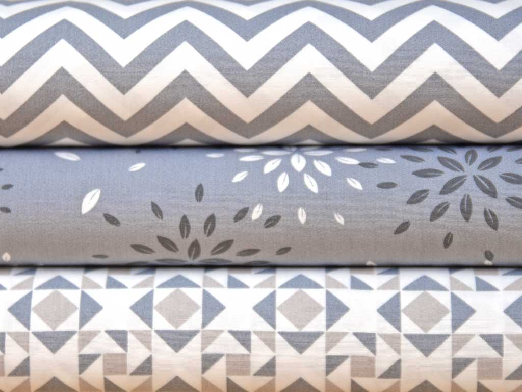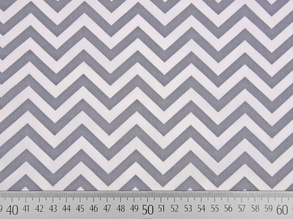 Ein weicher, glatter Baumwollstoff in weiss mit hellgrauem Zickzackmuster.