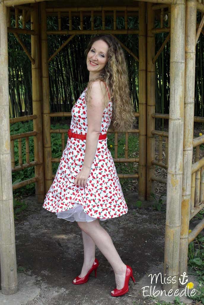 Ein weicher Jersey in weiß mit roten Kirschen und grünen Stengeln/Blättern.