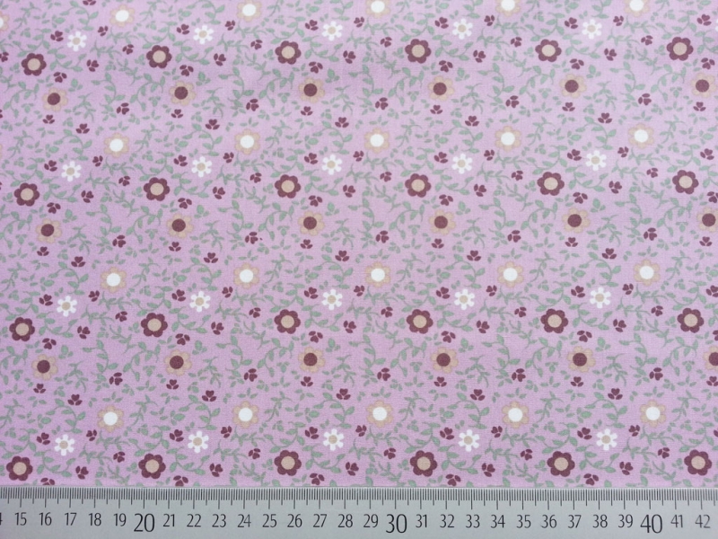 Ein toller Baumwollpopelin in altrosa mit bordeaux-farbenen Blumen und grünem Blattwerk.