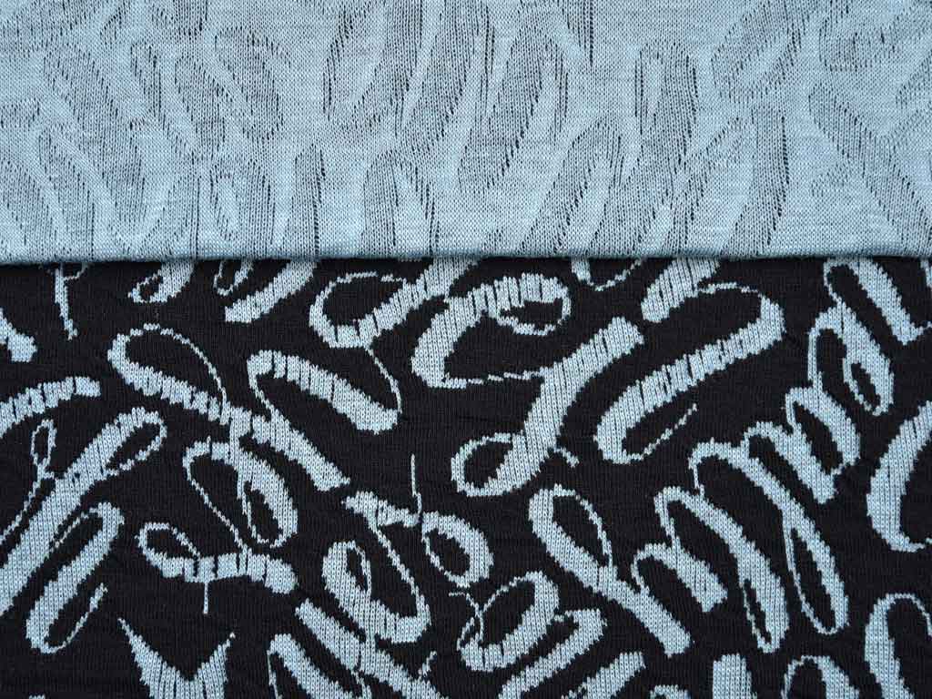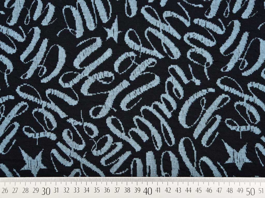 Hochwertiger 3D-Relief-Jacquard-Jersey aus 95% Baumwolle (Bio) (GOTS) von Hamburger Liebe aus der Serie "Hipster Square Oh Yes" hier in der Farbstellung rauchblau auf schwarz.