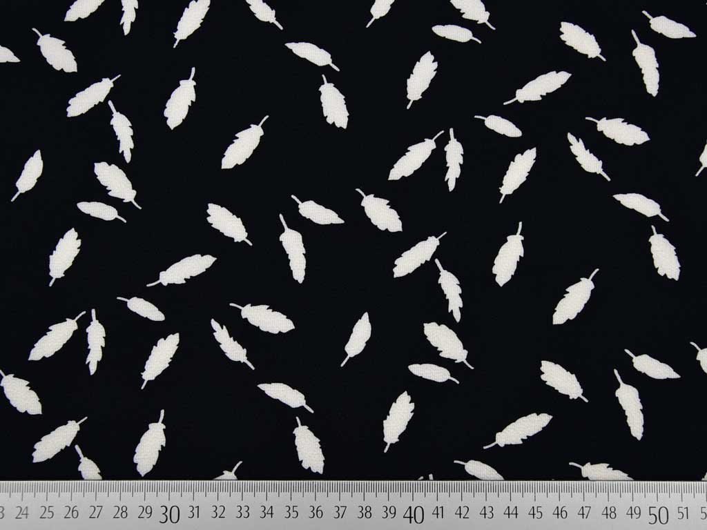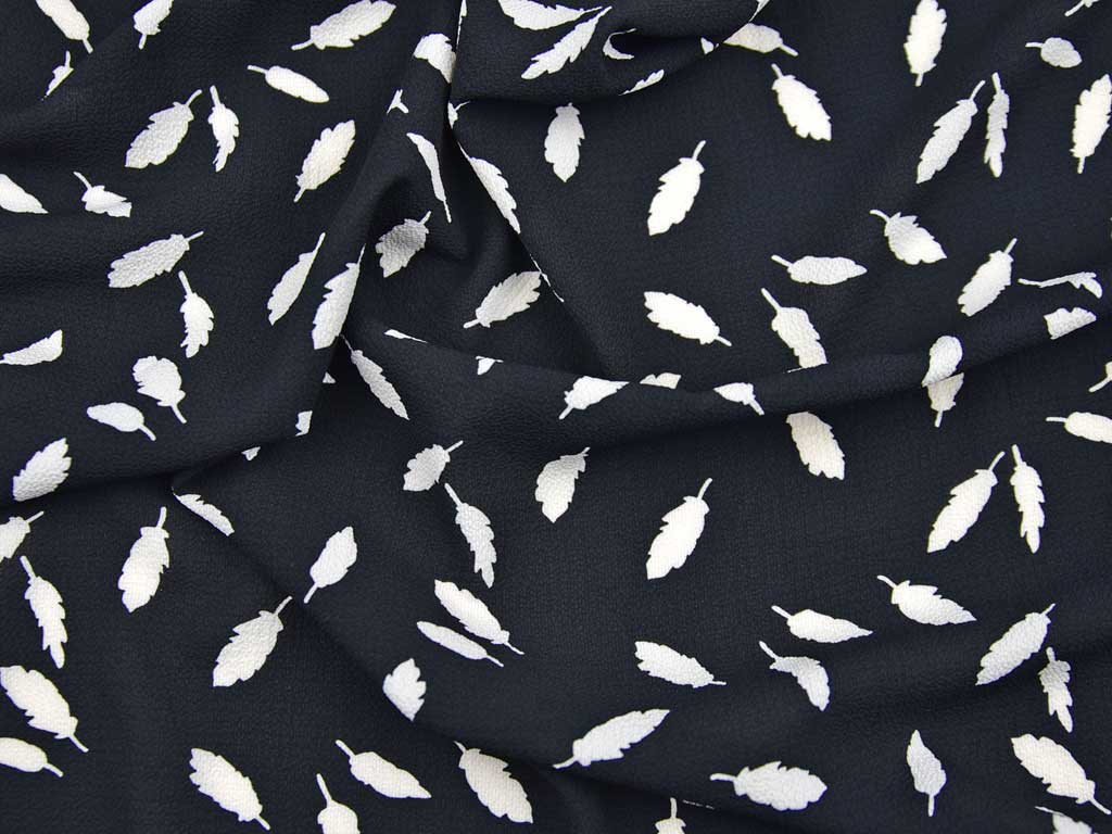 Ein luftig leichter Crepe Stoff in schwarz mit cremeweißen Blättern.