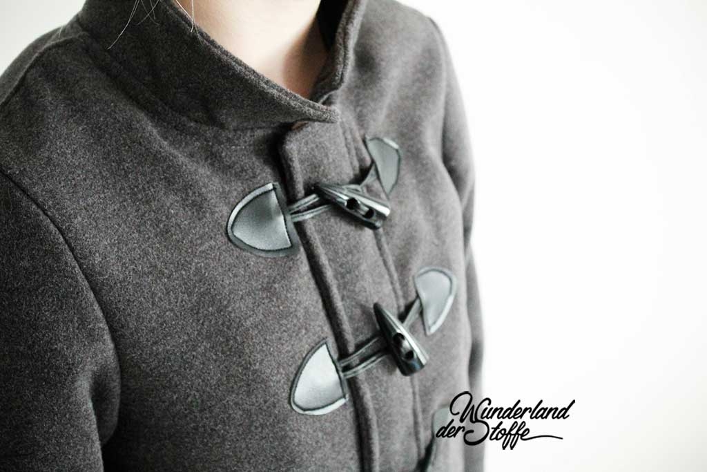 Ein weicher Velourstoff in Anthrazit. Der Stoff ähnelt von der Optik und Haptik einem Wollstoff, er kann aber bei Handwäsche gewaschen werden.