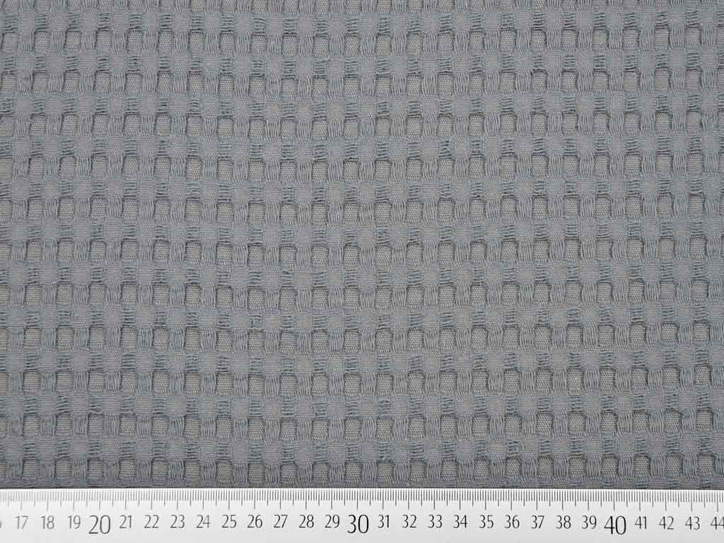 Ein toller Jacquard Frottee Stoff in dunkelgrau mit kleinen Rechtecken, die in Summe ein "großes" Waffelmuster ergeben.