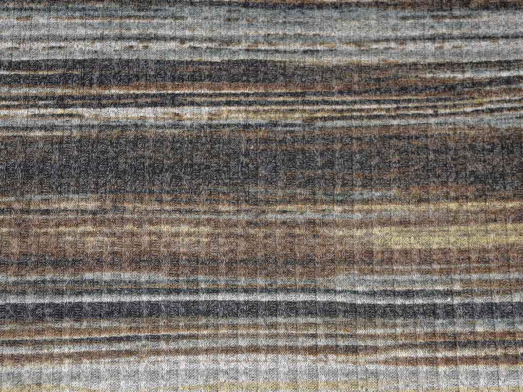 Ein weicher Rippenstrick mit unregelmäßigen Streifen in beige, braun und anthrazit.