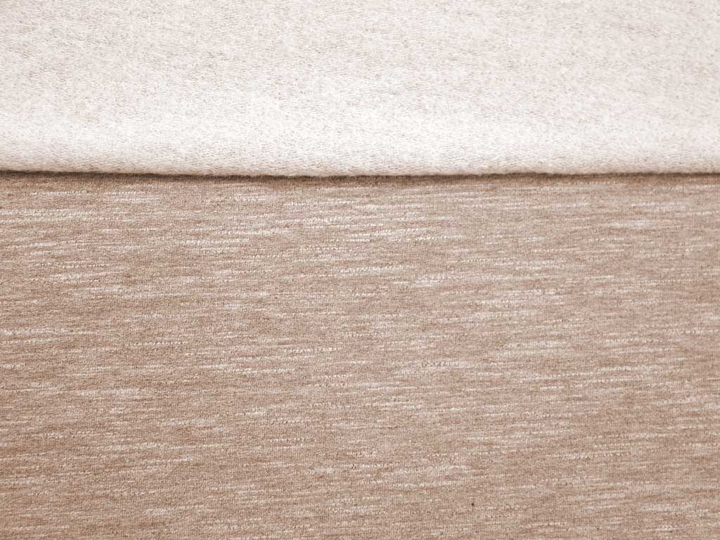 Ein weicher, elastischer Sweat in hellbraun melange. Die Rückseite ist angeraut und somit kuschelweich.