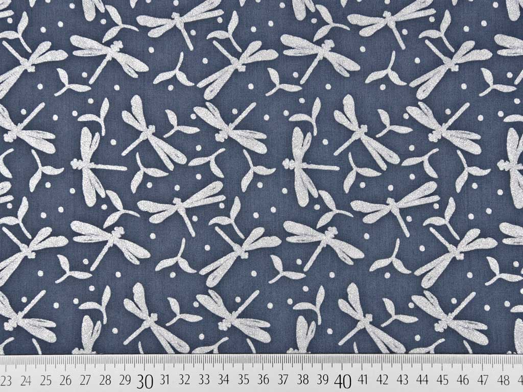 Feiner und super-weicher Bio-Voile mit silberfarbigen Glitzer-Libellen. Toller Hingucker.
