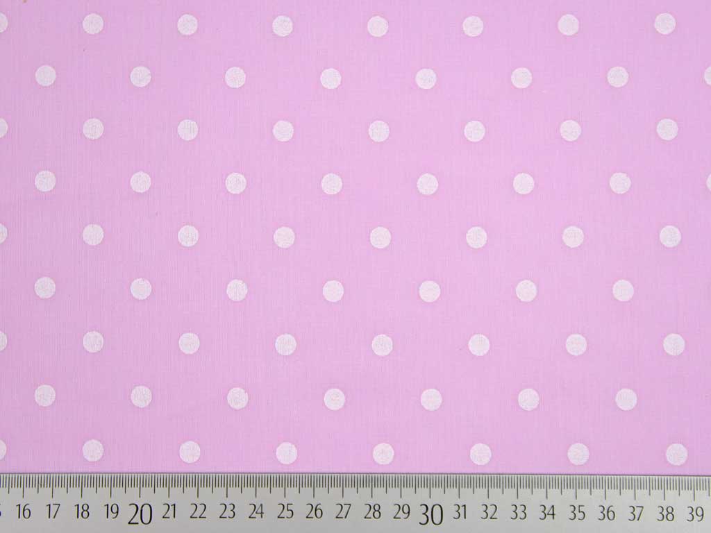 Ein weicher rosa Voile aus 100% Baumwolle mit bedruckt weißen Punkten. Der Durchmesser der Punkte ist 7 mm. Wie bei Voile üblich, handelt es um einen leichten, feinfädigen und leicht transparenten Baumwollstoff.