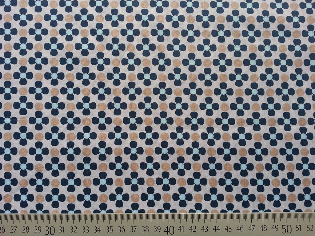 Ein wunderschöner Retrostoff als Baumwoll Popelin in beige mit dunkelblauen Blumen.